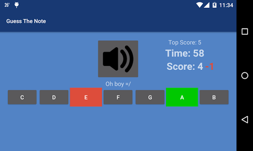 Listen to the notes carefully, repeat them if you like, and guess them all! A correct guess increases your score and gives you extra time, while a wrong guess cuts your score down a little bit.