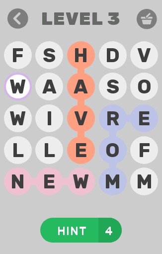 Find the word or words. You have 200 levels. Each level contains 2 or 3 or 4 or 5 words. Try to find them all.