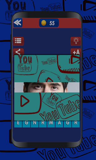 Easy, at the level we present an image with the eyes of some youtuber, you must guess the name of it, put the necessary letters to complete the name of your favorite youtuber.
