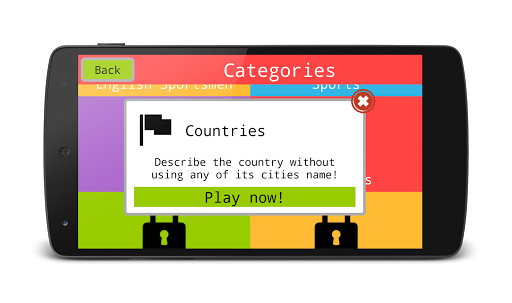 This game is based on the Activity game. It can be played by 4 teams at a time, and each team has to have 2 members. On of the teams member has to hold the phone on the forehead,the other has to help his teammate to guess the word by describing it or acting it out.
