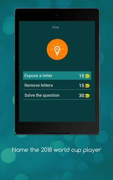 Free football quiz app that you are sure to love. Can you guess the 2018 world cup player from the clues given. over 100 levels for you to complete. If you like please leave a review and get in touch with other apps you would like to see Enjoy.