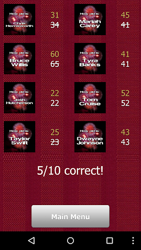 You get to see 10 celebrity names. Try to guess as many of the 10 ages correct. Master the game by getting all of them right!
