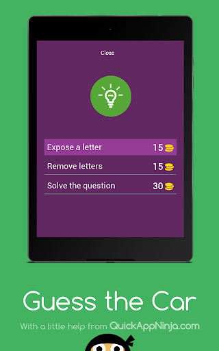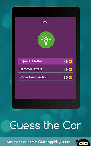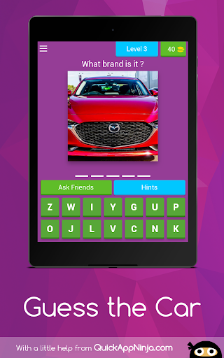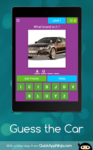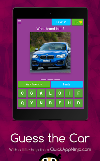 In this game you are given an image with an random car, and you with the help of the letters on the screen will have to guess what the car is, what company produces it.