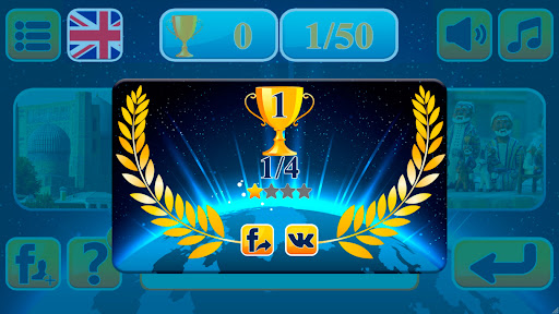 In game you will receive an award in the form of points for the correct answers. For the guessed country according to two images - 4 points, on three - 3 points, on four - 2 points. By each pressing the hint you lose one point.