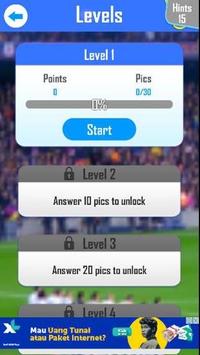 *You have to answer the question to pass each level by locating right letters at the available space which is football cub's name.*