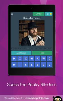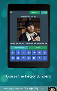 Guess all the Peaky Blinders series characters. There are old and new characters to guess like: Thomas Shelby, Michael Gray, Gina Gray, Abarama Gold, and all the Shelby members.