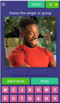 When starting a game, you must select the level. Then there are picture. And you have to guess which singer is it.