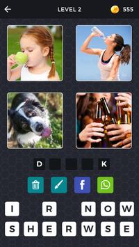 Can you guess the 4 pictures 1 word and unlock the levels? So simple, There is four pics and one word. So It's called Word Guessing Game: 4 pictures 1 word. Take the ultimate Emoji or Pictures test with this fun & highly addictive free game and try to guess all the Pictures or Emoji puzzles using only the 4 pics provided!