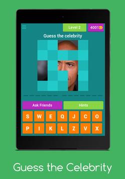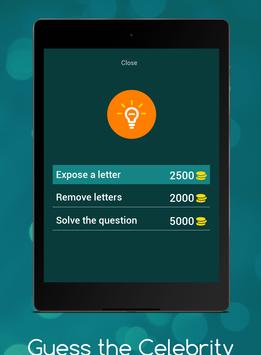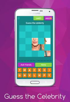 Guess the celebrity with your knowledge Simple game; you remove tiles to reveal a part of the image and guess the celebrity. The more tiles you remove the less coins you get. Starting coins awarded will be 4000 GOOD LUCK and ENJOY!!