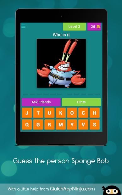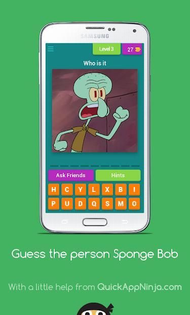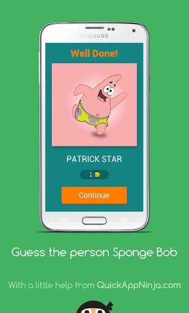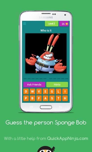 I'm glad to tell you that 20,000+ users downloaded Guess the person Sponge Bob latest version on 9Apps for free every week! A lot of functions and features are contained in this app. This hot app was released on 2018-09-05. It is one of the popular Android apps in 2015.