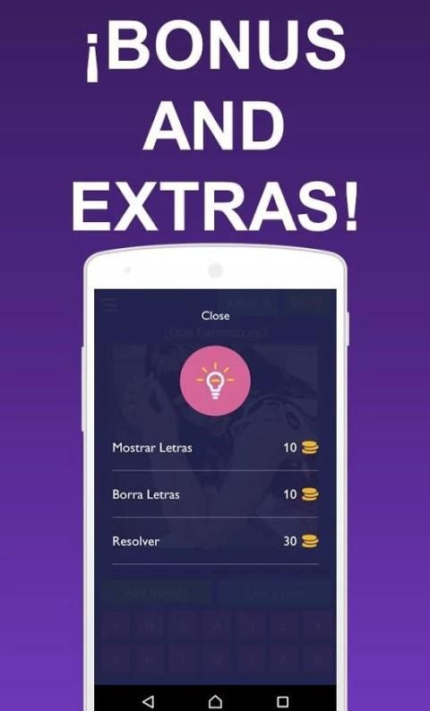 At each level an image is displayed with the face of the famous person, you must use this to recognize it and guess its name. If the name is correctly guessed, it automatically goes to the next level and rewards and extras are received.