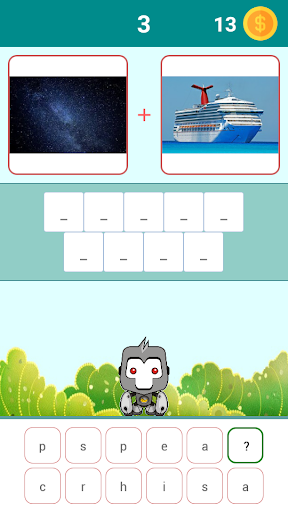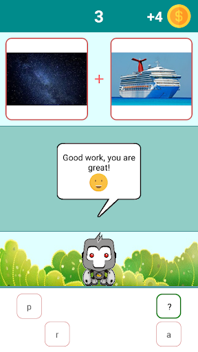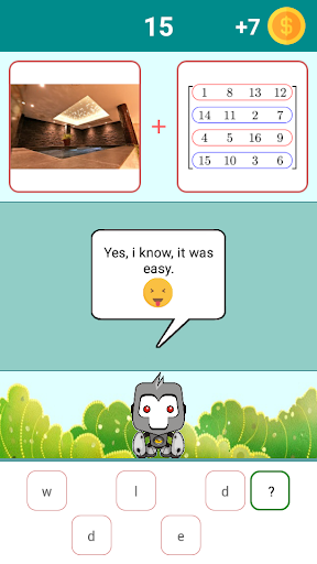 Guess the word is a brain teaser game with funny animations, become friend with Bananabot a nice robot that help you to pass the levels. In Guess the word you have to "read" two images to create a word or a phrase. Sharpen your skills and open your mind with Guess the word!!