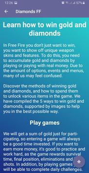 This application is informative. This is not a Free Fire hack and does not access any server, it can not verify user names, nor send or receive data from Free Fire or other parties. They are legal and safe tips for obtaining free diamonds for Free Fire, which work today and will be renewed over time.