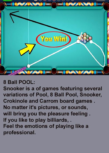 The Pool guideline 8 Ball tool helps you to play an accurate shot both direct and indirect. Guide for 8 Ball Pool Just set the tool once, play shots like a pro, be the king of the table.
