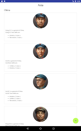 Here can you find the info of the generals of World Conqueror 3 ranked by nation.