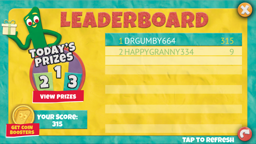 Finally is the Grand Prize Leaderboard where finishing in 1st, 2nd or 3rd place by earning the mostGumby Coins in a day awards prizes so big or so rare, Gumby can only give them away once a day!