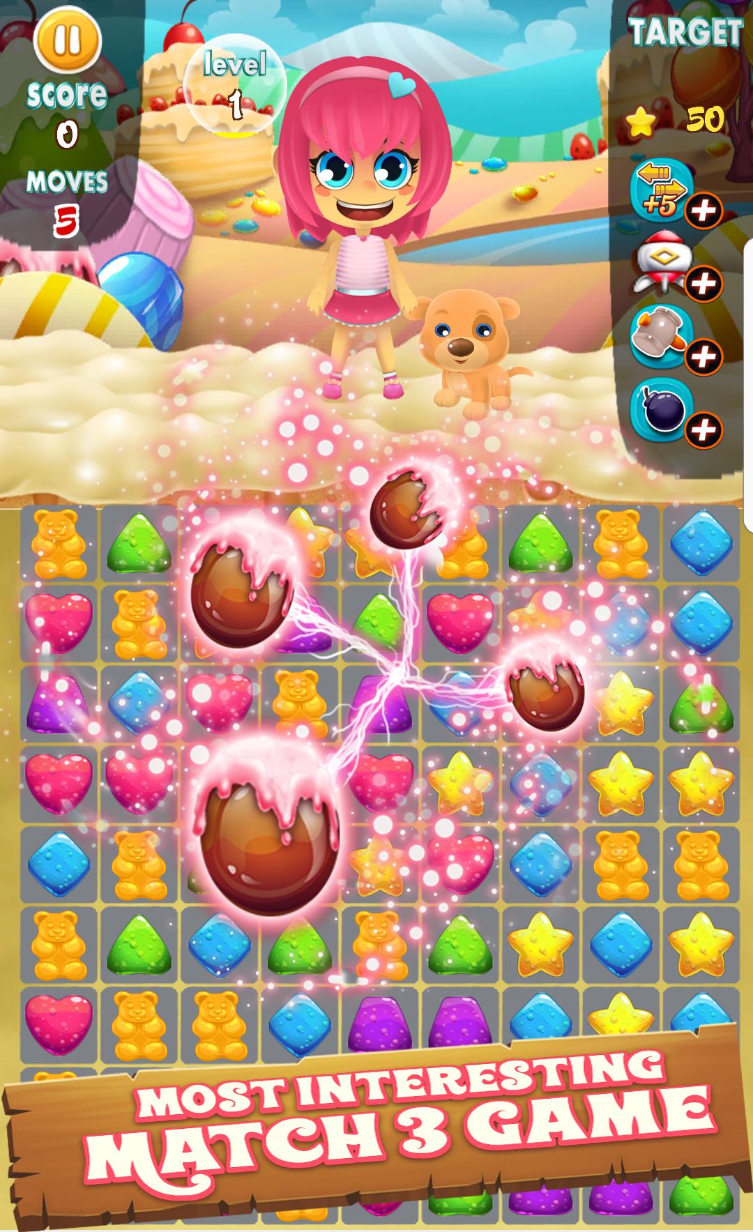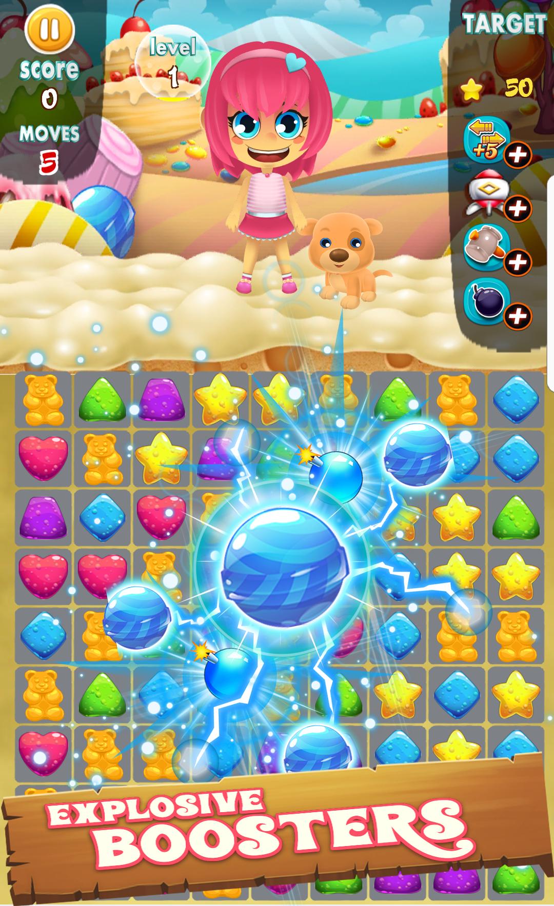 ★ Fun game music and sounds to keep the happiness in gummy crush game candy land !