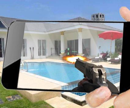Augmented Shooter in Augmented Reality is a First Person Shooter Gun Simulator which let's you shoot with Pistole, M4, AK-47, Pumpgun, Shotgun, Sniper, Machinegun and many more weapons.