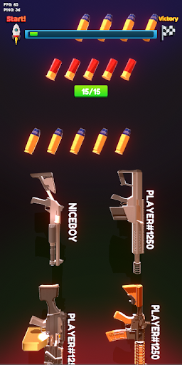 Gun Flipping 3D Online 2021 is very simple game with 4 game modes: Fast Shoot, Racing 1, Survival and Racing 2. You will control the gun by tapping on the screen. Trying to stay focused to get the best score in offline mode and winning against other players in online mode. Good luck and have fun!