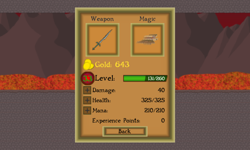 - RPG elements (levels, pumping characteristics, buying weapons and magic)