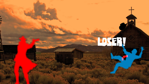 High Noon At The O.K. Corral When I say Draw, Draw! Choose which Gunslinger. Tap him to draw and shoot your opponent. Dont shoot too early you'll be shot by the Sheriff