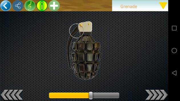 Realistic Guns sound simulator, Nearly 100 kinds of guns for your choice, including pistols, rifles, machine guns, artillery, tanks, grenades, rockets and so on.