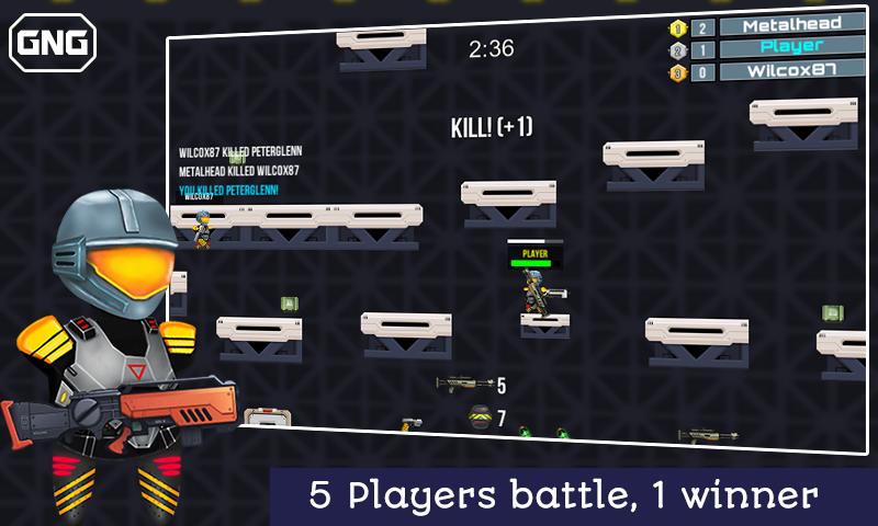 pvp multiplayer action game with 5 players shooting action game in 2d battleground. Don't be quit rush on your enemies.