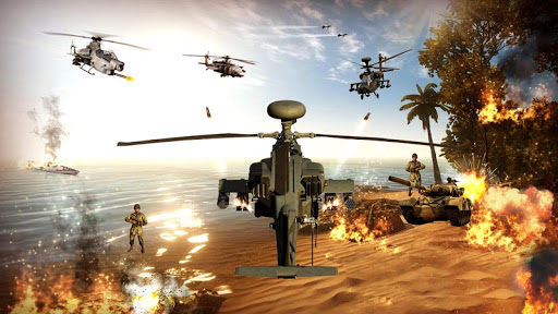 Through your helicopter attack your enemies from a defensive position and focus them, the counter strike may affect your target hitting and defeat them. Single mistake will leads your whole army and commandos and military into the doors of death and destroy them. Defeat your enemy and destroy them by attacking the enemy boats on the sea and other military weapons in desert and snow and try to sink them with your rockets or machine guns on of your gunship helicopter.