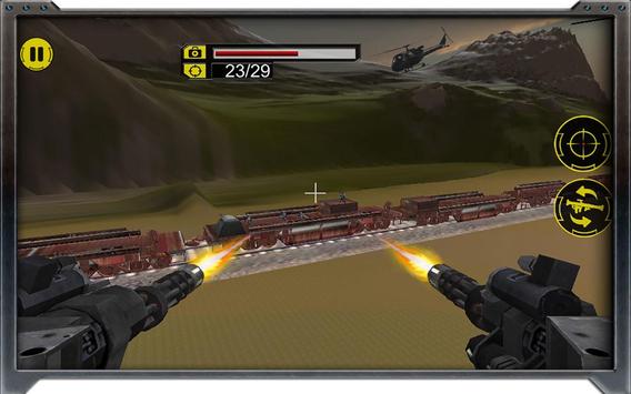 This is an ultimate helicopter gunner game with full action packed. Being frontline commander protect the train from enemies which hijacked by them. There is deadly war of destruction in front of us and supplies through train to borderline forces for commando army. This is the most deadly gunship battle in which you have to kill all the enemies. Use your gunner and rocket launcher to ward off the enemy attack and make sure the supplies reach on time. The enemy will try to attack back on you at all cost, even helicopter gunship gunner will try to attack you. To complete your mission, you have to successfully eliminate all the incoming waves of enemy soldiers and helicopter gunship; and let the train reach the supply area successfully.