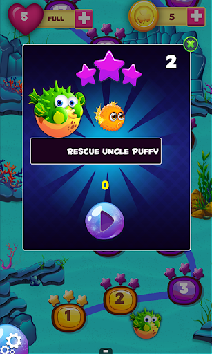 Under Paradise Island lies Guppies’ magical habitat with two fun filled styles of gameplay - “Get the Stars” and “Save Uncle Puffy”. This is a simple but challenging to play bubbleshooter game. All you have to do is aim your bubble at the same colored ones on the board and let it go. When you’ve aimed correctly, the bubbles you aimed at will pop and you will earn points. Clear the board or rescue Uncle Puffy to complete a level and advance down the watery path to more popping action.