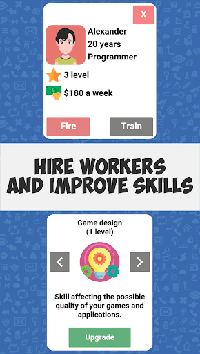- Create mobile games and applications of different genres and directions. You can choose the graphics, game sizes, icons for them and much more. All released games are saved and you can show them to your friends.