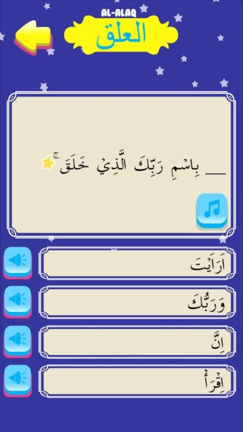 - Puzzle: Fill in the blanks in order to form a Surah Al 'Alaq complete