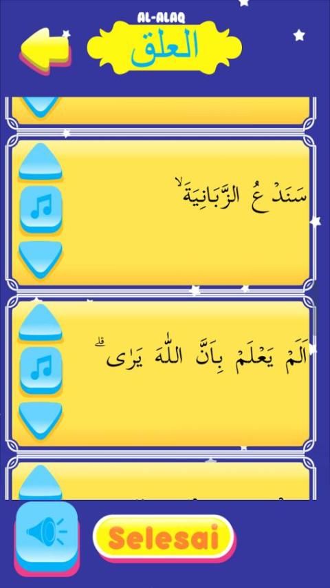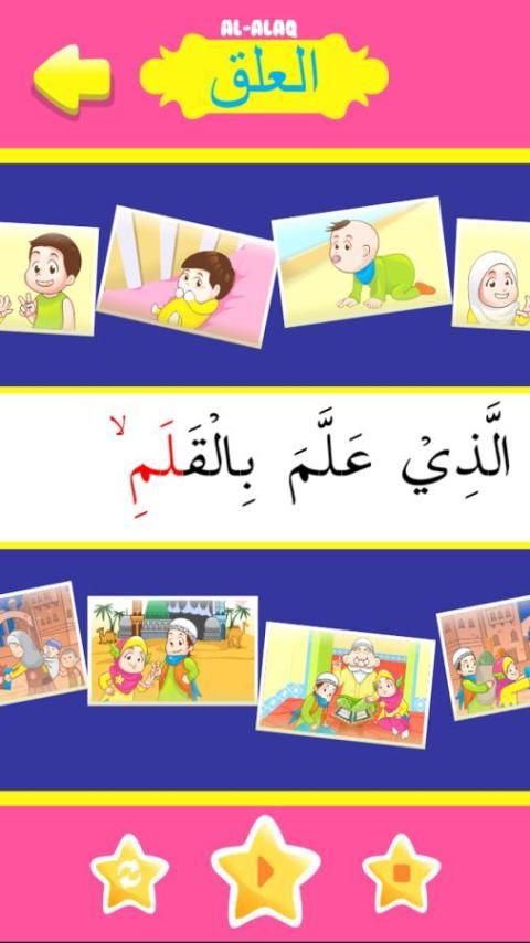 - Murotal: murotal Surah Al 'Alaq will be played automatically followed perkata highlight being read