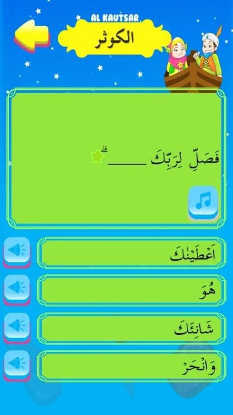 - Puzzle: fill in the blanks in order to form a complete Al-Kawthar