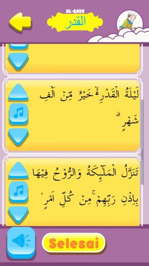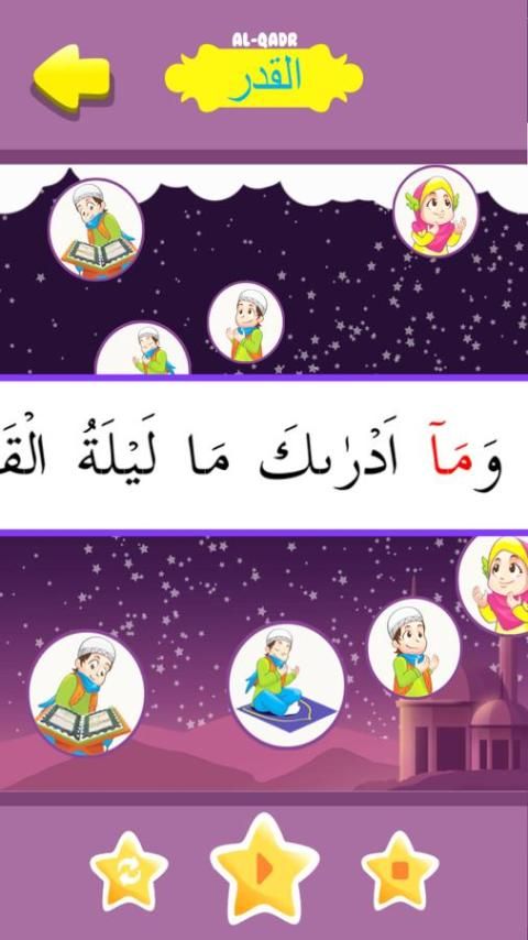 - Murotal: murotal Al-Qadr will be played automatically followed perkata highlight being read