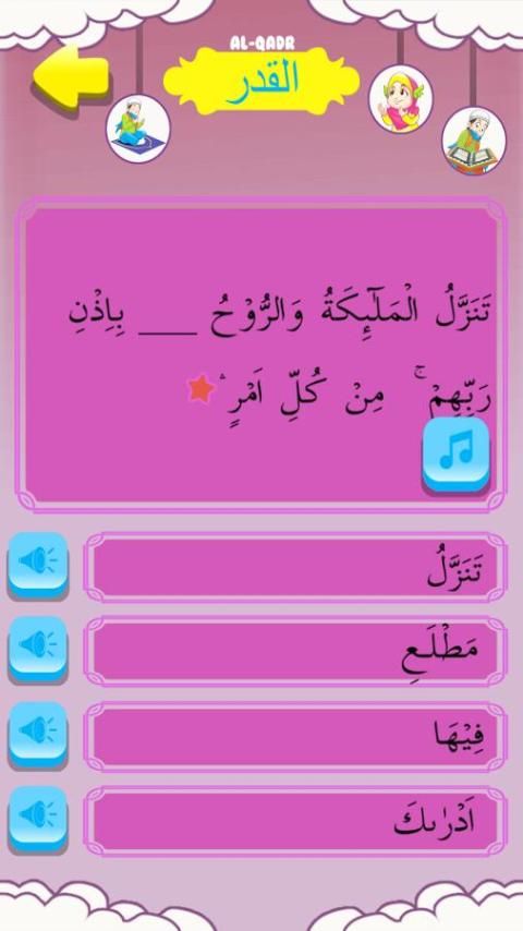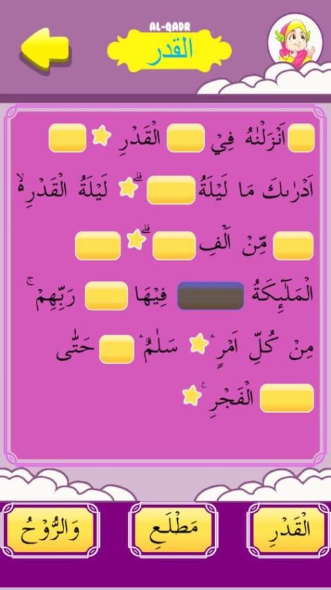 - Puzzle: Fill in the blanks in order to form a complete Al-Qadr