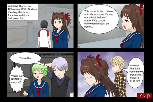 In this game you will take the role of Aka a High school student of Akakawa who joins her friends Kyo, Kenshi, Eri and Felix in a Halloween tradition gone wrong. Stalked by a vengeful spirit; fighting to keep your sanity, find your friends and escape.