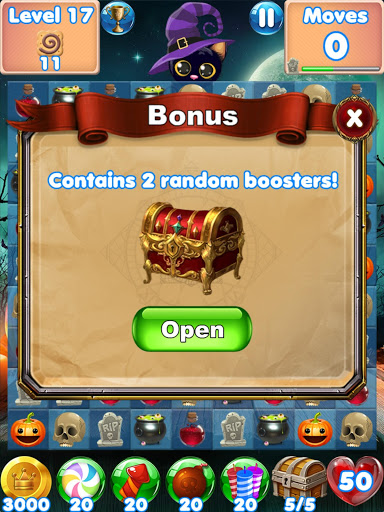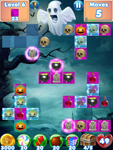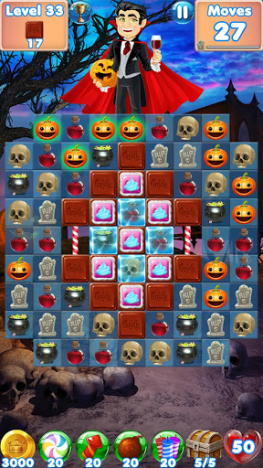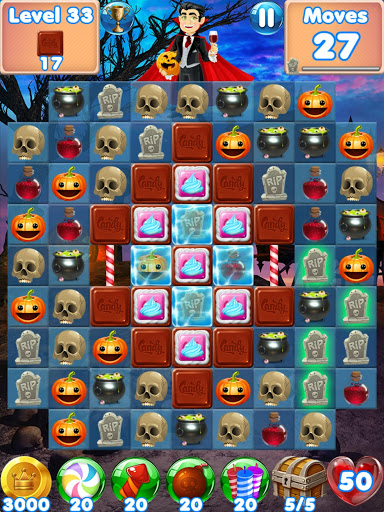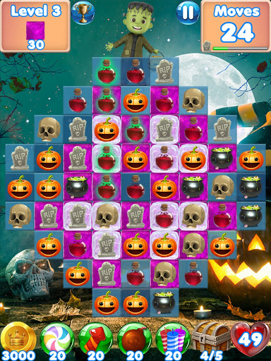 🍒 To play match 3 , 4, or 5, candy for each puzzle. Tons of super color combos to match . Keep your mind sweet and train your brain with strategy . Need your best strategy to clear all the matching candy and tasty puzzles for each level. Can beat and play every level for free ! Only buy combos to help you match but not needed to win ! Great for fans of all halloween games ! Hours of match 3 fun !