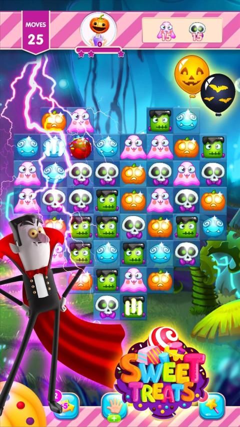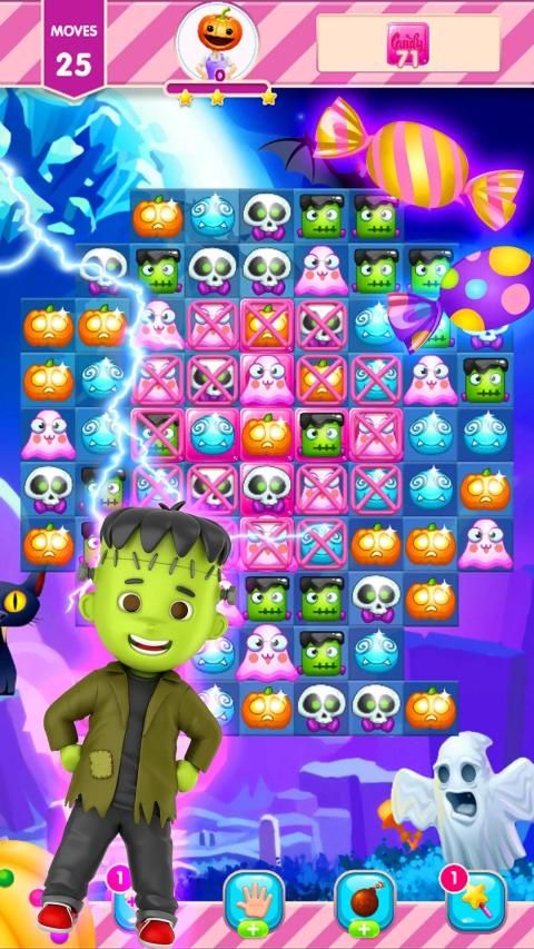 Fun new match 3 game for Halloween. Spooky backgrounds and wonderful haunted music to get you in the mood for Halloween. Pop and crush all the cute monsters and candy. Don't just play for Halloween, this puzzle game is great fun all year long!