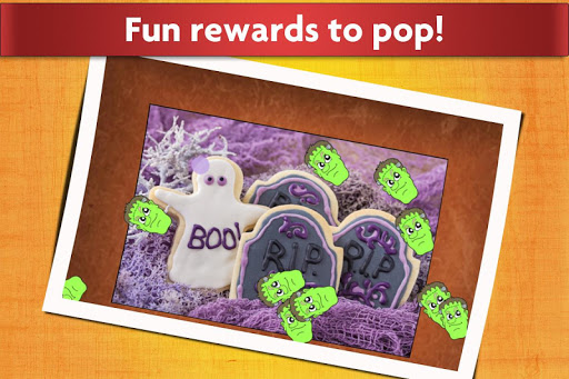 These relaxing puzzles feature beautiful pictures and a fun reward when the image is completed. The Halloween puzzles include classic Halloween themes like scary ghosts, creepy monsters, and haunted castles, while the rewards include balloons, fruits, snowflakes and many more surprises!