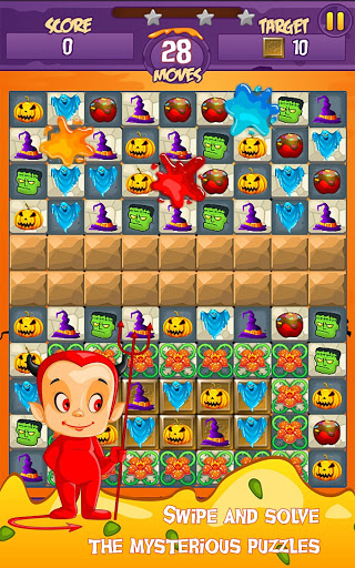 Halloween Smash is a very addictive match 3 game! Smash Halloween costumes by your finger, and enjoy witch splash! Halloween Smash is a very addictive splash and most interesting match-three casual game in the google play! This match-3 game is also a brand new amazing casual game, completely free!! Objectives differ in over many levels. Make matches of 3 or more Halloween icons, create a Halloween blast! or slide combination 3 or more same Halloween items to make a explosions! Starts out simple, but things get more and more interesting and challenging. This witch puzzle match-3 game brew magic potions & charms in an adventure of sorcery and witchcraft with amazing graphics that come with a Halloween twist. Swap charming items to match 3 or more and create waves of spine-tingling excitement.