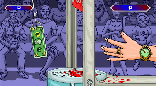 To grab the money, just stick your hands between a razor sharp guillotine.
