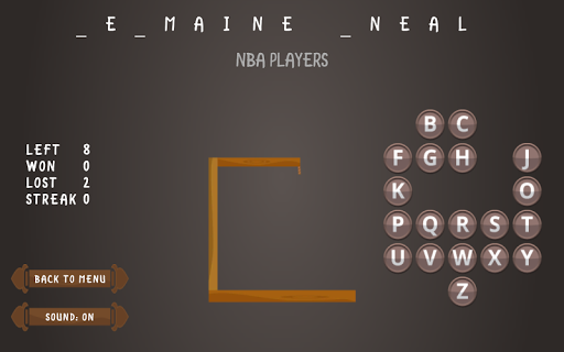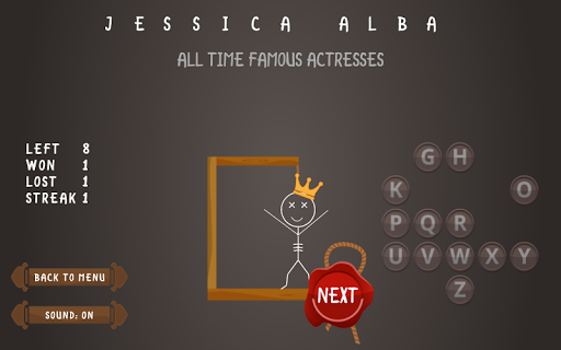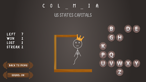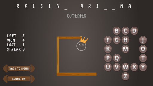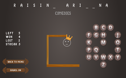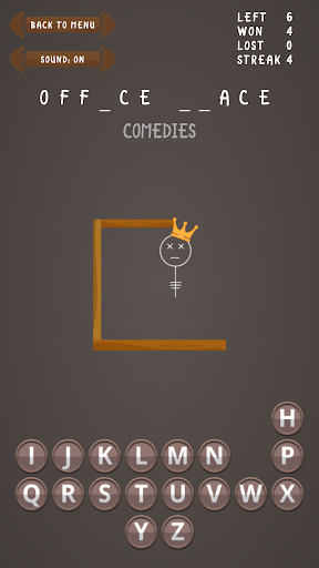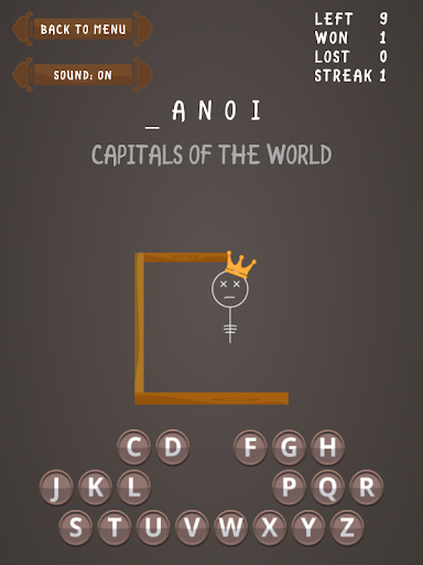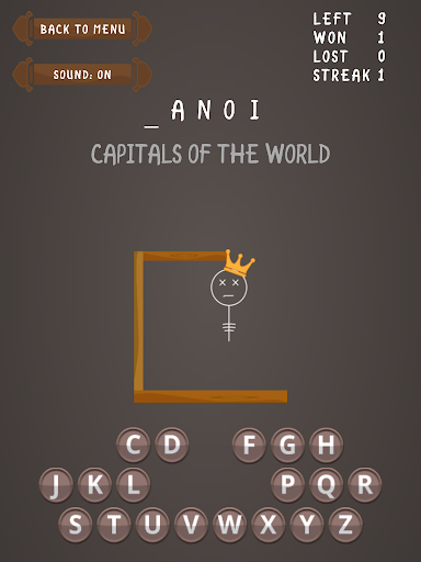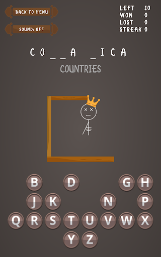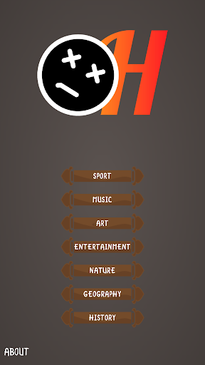 Hangman, the classic word puzzle game, with 70 categories and a word list of over 5,000 riddles. Main categories include: - Entertainment - Geography - Music - History - Sport - Art - Nature