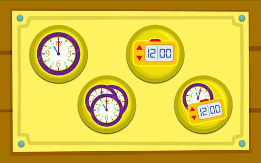- Clocks. Clocks contain four types of time training at the basic and simple levels. The main goal is to repeat the numbers, is to teach children to work with analog and digital clocks;