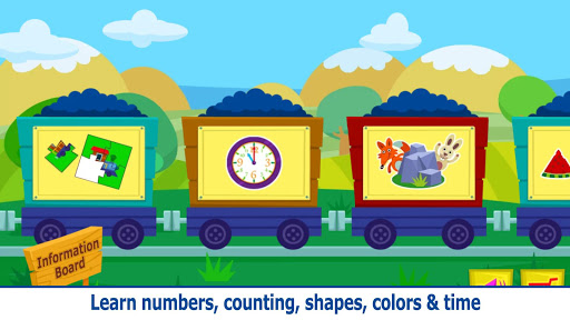In Happiness Train your kid will determine the shapes and colors of things and objects, think logically, develop dexterity and speed, learn emergency numbers, learn ABC and basic math, and so on.