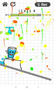 Hundreds of the levels with unique glass and problems. The rule is you can touch once on the screen to draw a line. You have limited time to draw the line. Once you pick up your finger, then you can’t draw anymore. So you have to choose wisely what you need to draw and in proper allowed time in that level. The line will be converted into a rigid body and tap water then can flow on it. So you have to draw the lines in such way so that all the water goes into the glass and make your glass the super smile glass happy. Obviously it’s gonna be a time management game as well. You have to meet the ticking clock speed to draw our line. Draw Lines To Fill Up Glass.