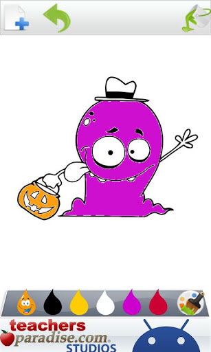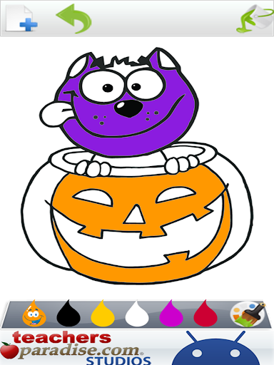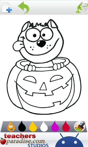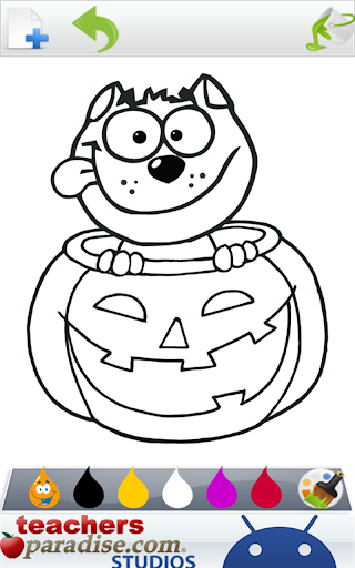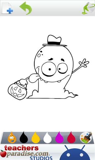 more than 60 funny Halloween coloring pages, over 200 colors, pencil and brush size adjustment (long press the pencil/paintbrush button) , undo, and auto fill coloring paint bucket for coloring with ease.