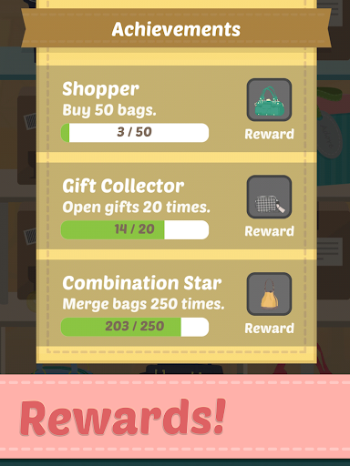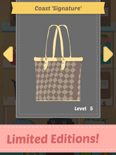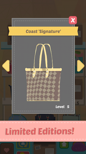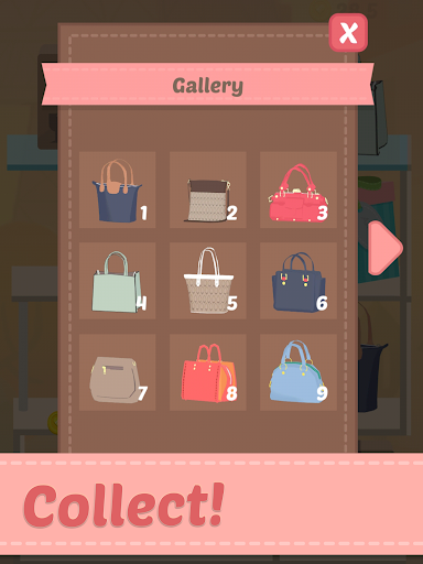 Start your handbag gallery and collect beautiful and rare designer luxury handbags. Begin with a basic bag, merge it with another to create a new bag. Match and merge more bags to unlock new handbags and add them to your collection.
