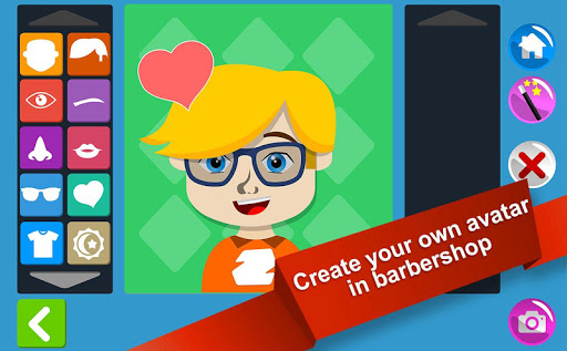 - Hair Saloon: In this section kids can create their own characters and avatars and also become familiar with equipment and objects used in hair saloons or barber shops.