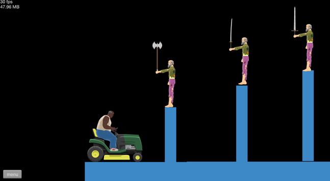 Happy Wheels an exciting game with sadistic inclinations and black humor. The essence of the game is extremely simple: you have to get to one of the vehicles to the finish. The problem is that not every part of your body will get along with you. Huge chainsaws, thorns, watermelons, pineapples and many others want to tear off a piece from you!